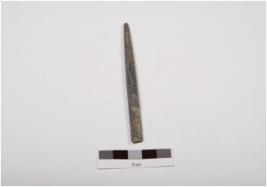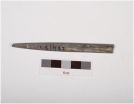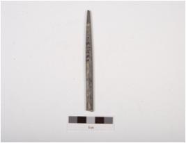 | Description / विवरण | Fragment of a stone point, long with polished surface, rectangular in section and partly broken at pointed ends. |