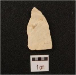 | Description / विवरण | A side scraper made on a side struck chert flake, flake scars on dorsal side and regular retouching on working edges. |