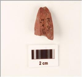 | Description / विवरण | A stone core, made on chert, red in colour, blade scars on surface. |