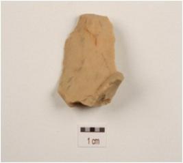 | Description / विवरण | Side scraper made on end struck chert flake, prepared platform, single ridge on dorsal diffused bulb on ventral side and used wear marks. |