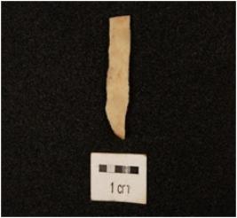 | Description / विवरण | A blade made on chert, single ridge, pointe tip and use wear edges. |