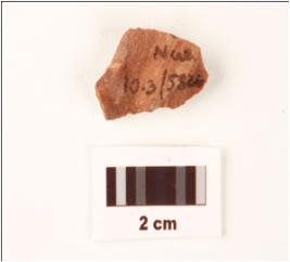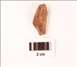 | Description / विवरण | A small flake made on chert, red in colour, proximal end has defused bulb on ventral side. |