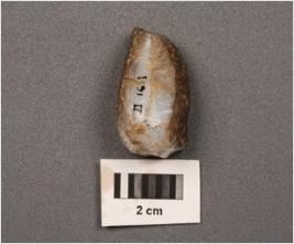 | Description / विवरण | A fragment of core, 2 flake scares on one side, five blade scares on another side cortex on two sides. |
