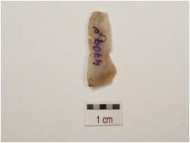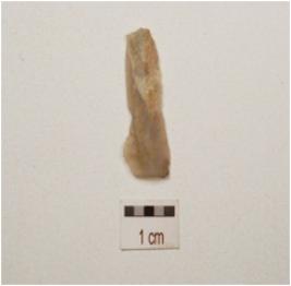 | Description / विवरण | A chalcedony blade with double ridge on dorsal, trapezoidal section and use wear marks on cutting edge. |