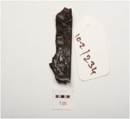| Description / विवरण | Fragment of iron chisel, broken on both ends, rough surface and chemically surface. |