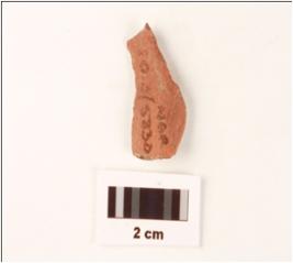 | Description / विवरण | A stone flake made on chert, red in colour end struck flake, rough surface. |