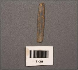 | Description / विवरण | Parallel sided blade, use wear marks on cutting edges, diffused bubl with striking plat form at proximal end, distal end is broken. |