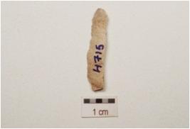 | Description / विवरण | A chert blade with single ridge on dorsal, triangular in section, diffused bulb on ventral and use wear marks on cutting edge. |