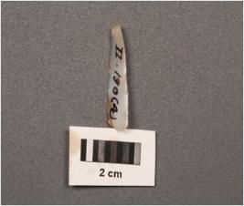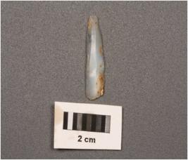 | Description / विवरण | A point on blade with sharp cutting edges, diffused bulb at proximal end, two vertical ridges on dorsal surface, concave ventral surface. |