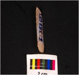 | Description / विवरण | Parallel sided blade with single ridge on dorsal diffused bulb on ventral core given heat treatment and use-wear marks along cutting edge. |