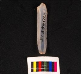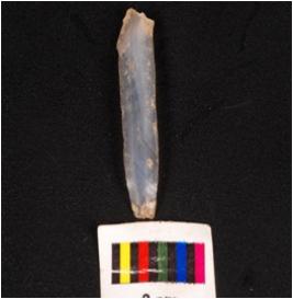 | Description / विवरण | Parallel sided blade, made on chalcedony, mid ridge on dorsal ventral is smooth with diffuse bulb and use wear marks on edge. |