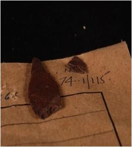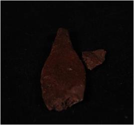 | Description / विवरण | Fragment of a copper spearhead leaf shape with flat surface and pointed end. |