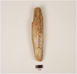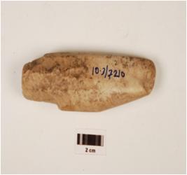 | Description / विवरण | A fluted core, made on chert with nine blade scars on surface, smooth surface, prepared platform, pointed one end and oval in section. |