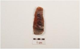 | Description / विवरण | A chert blade with double ridge on dorsal, trapezoidal in section, ripple marks on dorsal and use wear marks on cutting edge. |