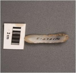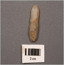 | Description / विवरण | Chalcedony parallel sided blade with a cortex on dorsal side and wear used marks on cutting edges. |