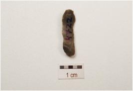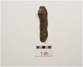 | Description / विवरण | A parallel sided chert blade with prominent mid ridge on dorsal, triangular in section and use wear marks on cutting edge. |