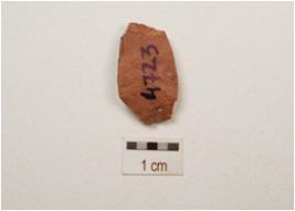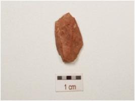 | Description / विवरण | A chert blade with double ridge on dorsal, trapezoidal in section, slightly chipped off proximal end and use wear marks on cutting edge. |