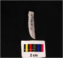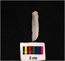 | Description / विवरण | Parallel sided stone blade made of chalcedony mid ridge on dorsal ventral is smooth, one end pointed and use wear marks on edge. |