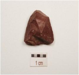 | Description / विवरण | Fragment of chert blade with two ridges, prepared platform, use wear marks on left cutting edge, blunt on right and broken along distal end. |