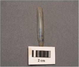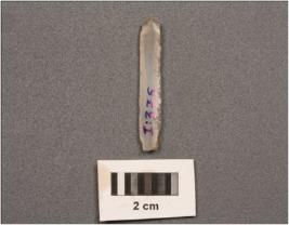 | Description / विवरण | Parallel-sided microlith blade with double ridges on dorsal, diffused bulb on ventral, trapezoidal in section and use-wear marks on left cutting edge. |