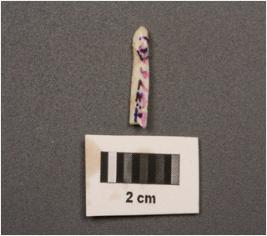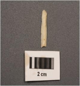 | Description / विवरण | Fragment of parallel sided microlithic blade with two ridges on dorsal , trapezoidal in section, diffused bulb on ventral , use wear marks on cutting edges and broken at distal end. |