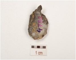 | Description / विवरण | A end struck utilized flake made on chert with flake scars on dorsal, chipped off diffused bulb on ventral and use wear marks on edges. |