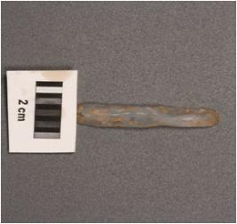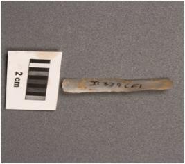 | Description / विवरण | Chalcedony parallel sided blade with mid ridge used wear on edges and ripples on ventral. |