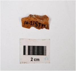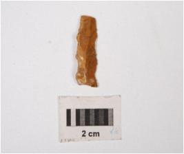 | Description / विवरण | Small parallel sided chert blade, mid-ridge on ventral side, use-wear marks on edges, defused bulb on proximal end, yellow in colour. |