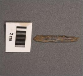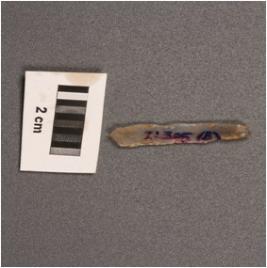 | Description / विवरण | Chalcedony parallel sided blade with a ridge on dorsal used wear marks on cutting edges and broken distal end. |