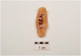 | Description / विवरण | A core made on chalcedony with three blade scars on surface, prepared platform and raw material given heat treatment. |