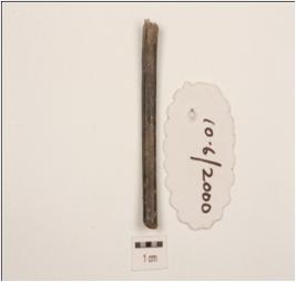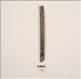 | Description / विवरण | A charred bone point, broken from both ends rectangular section, slight, curved , smooth surface. |