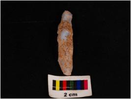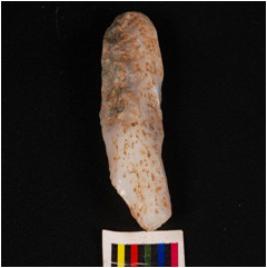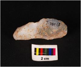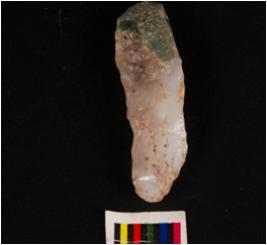 | Description / विवरण | chalcedony flake with flake scars and use wear on edge. |
