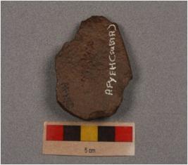 | Description / विवरण | Side scraper detached from on end struck flake, prepared platform, diffused bulb, irregular retouch on the right and left cutting edge on dorsal side. |