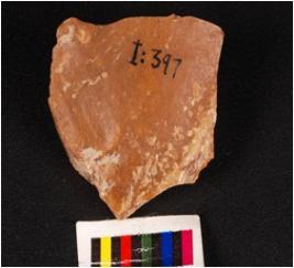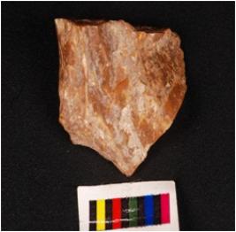 | Description / विवरण | A side scraper made on chert with flake scars on the surface and irregular cutting edges and prepared platform. |
