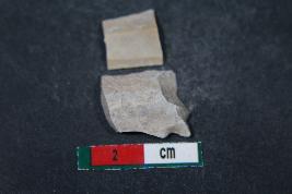 | Description / विवरण | Fragment of a Blade with one dorsal ridge having smooth surface. Shorter fragment along with two dorsal ridges has Length equivalent to 0.9 cm. |