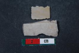 | Description / विवरण | Fragment of a Blade with one dorsal ridge having smooth surface. Shorter fragment along with two dorsal ridges has Length equivalent to 1.3 cm. |