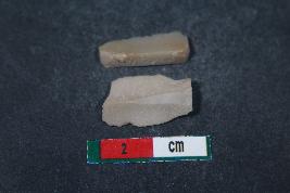 | Description / विवरण | Fragment of a Blade with one dorsal ridge along with bulb of percussion having smooth surface. Shorter fragment has Length along with one dorsal ridge equivalent to 1.5 cm. |