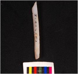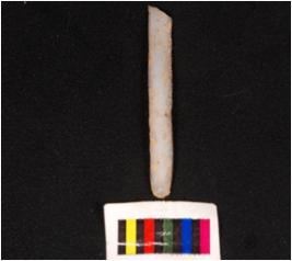 | Description / विवरण | Parallel sided blade, made of chalcedony mid ridge on dorsal ventral is smooth distal end is broken and use wear marks on edges. |