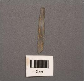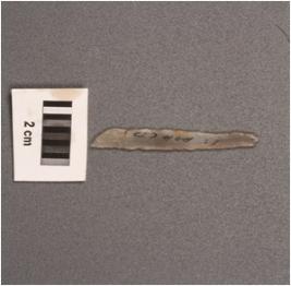 | Description / विवरण | A blade with use wear marks on both the working edges, diffused bulb, distal end broken and two ridge on dorsal. |