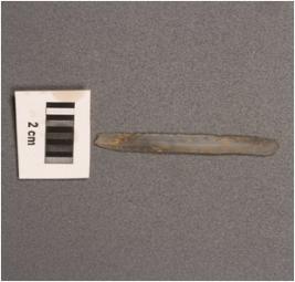 | Description / विवरण | Chalcedony parallel sided blade with a double ridge, sharp edges and trapezoidal section. |