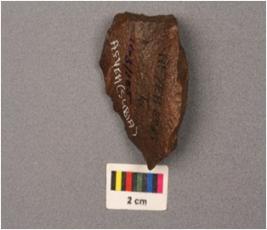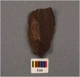 | Description / विवरण | A side scraper on end struck flake, use wear marks on cutting edges, triangular in section. |