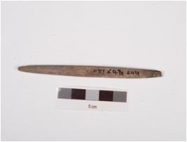 | Description / विवरण | A long stone point, both ends prepared sharp, one end is intact, tip of other end is chipped off, polished and smooth surface. |