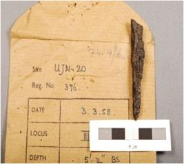 | Description / विवरण | Elongated arrow head with a pointed end, four edged, corroded surface. |