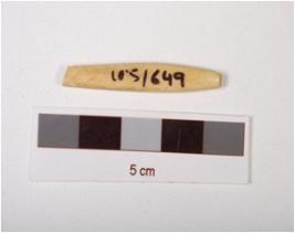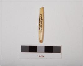 | Description / विवरण | Fragment of bone point, round section slightly flat from middle, polished and off white in colour. |