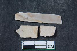 | Description / विवरण | Fragments of blades having two dorsal ridges and bulb of percussion in one fragment. They have smooth surface. |