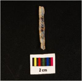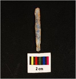 | Description / विवरण | Parallel sided microlithic blade with use wear marks on cutting edges and improminent mid ridge on dorsal and triangular in section. |