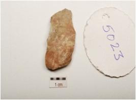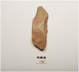 | Description / विवरण | A scraper made on chert, flake scars on the dorsal side and use wear marks on the cutting edges. |