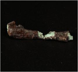 | Description / विवरण | Fragment of copper nail, corroded with circular head. |