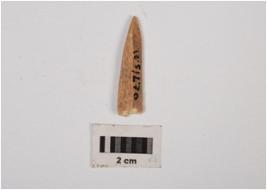 | Description / विवरण | Fragment of a bone point, conical in shape, pointed towards one hand and broken along the other hand. |