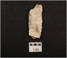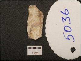 | Description / विवरण | A flake made on chert, blade scars on the dorsal side and use wear marks along the cutting edges. |